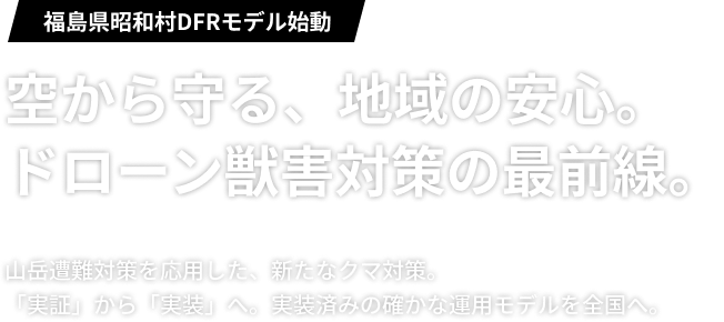 本モデルの裏には、2024年11月福島県昭和村と取り組んできたドローンによる遭難者捜索モデルの実績があります。2025年10月より本運用モデルをクマ対策として転用し村職員自ら操縦。猟友会など関係機関と連携しながら、クマ対策時の安全性の向上など確かな実績を上げています。