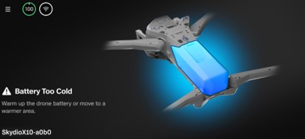 寒冷地ではバッテリーの性能が低下し、飛行時間が短くなる傾向があります。Skydio X10のバッテリーは、0°Cを下回ると離陸がロックされますが、これを解消するための「自己発熱機能」が搭載されています。